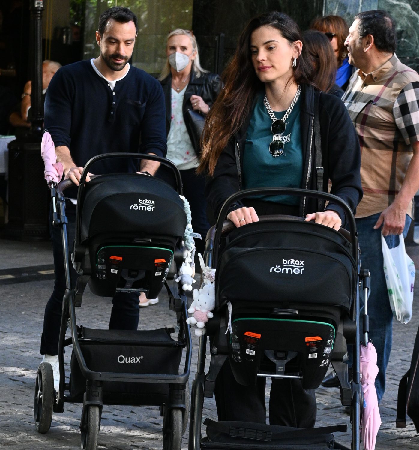 δίδυμα κοριτσάκια της τα οποία έχουν αρχίσει και βγάζουν δόντια.