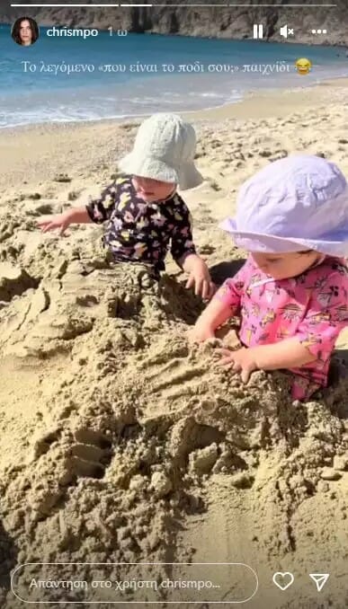 Η Χριστίνα Μπόμπα ανέβασε σχετική φωτογραφία στο instagram από τα παιχνίδια στην αμμουδιά με τις κόρες της, Αριάνα και Φιλίππα.