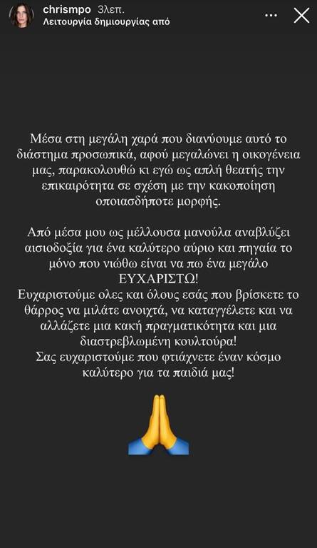 Η Χριστίνα με μια ανάρτηση παίρνει θέση, δηλώνοντας ευγνωμοσύνη σε όλους και όλες εκείνες που προσπαθούν να αλλάξουν τον κόσμο και την κοινωνία, εξασφαλίζοντας ένα καλύτερο αύριο για όλους!
