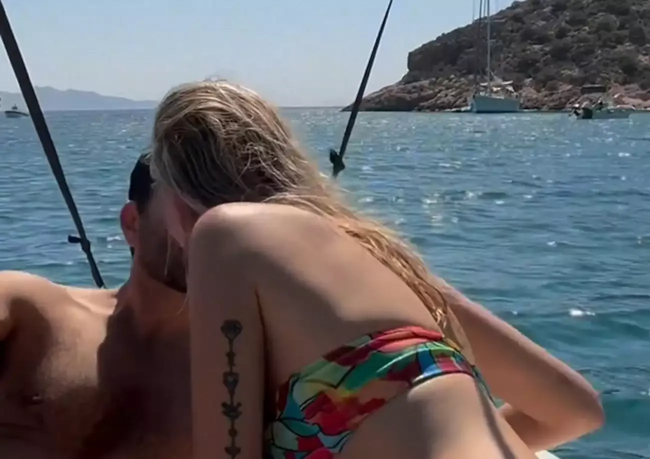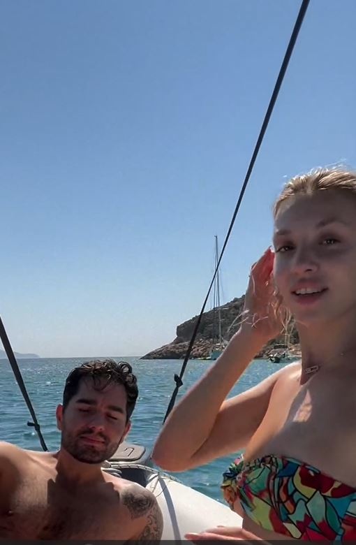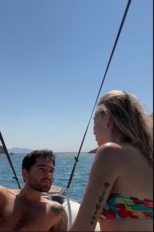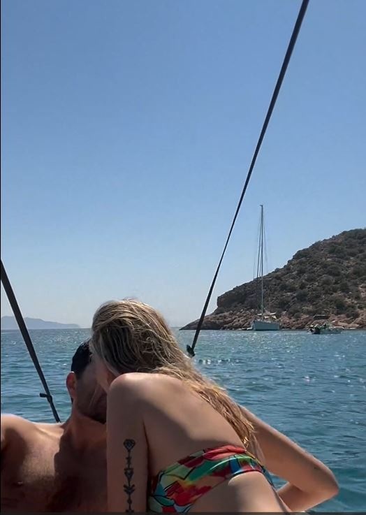 Το ερωτευμένο ζευγάρι έκανε το γύρο του νησιού με σκάφος, απόλαυσαν τις βουτιές τους και τον ήλιο και αντάλλαξαν καυτά φιλιά πάνω στο σκάφος.