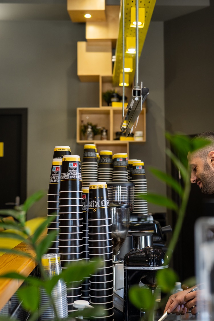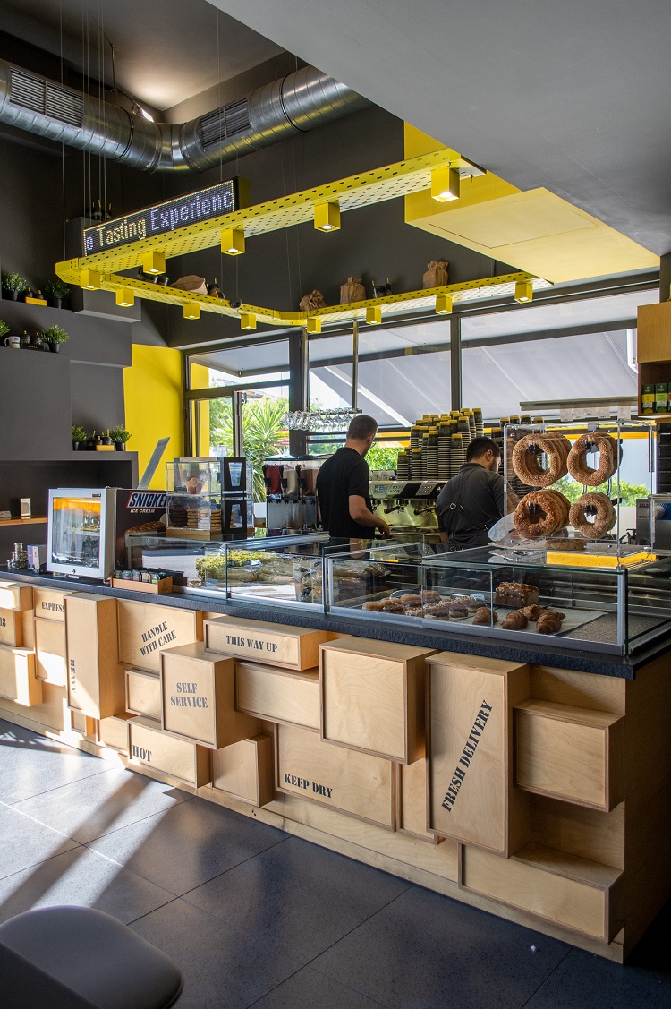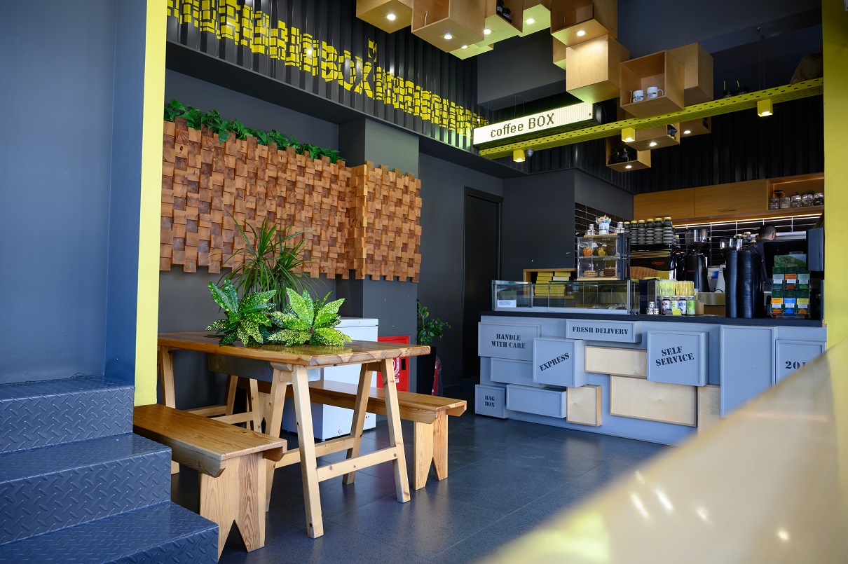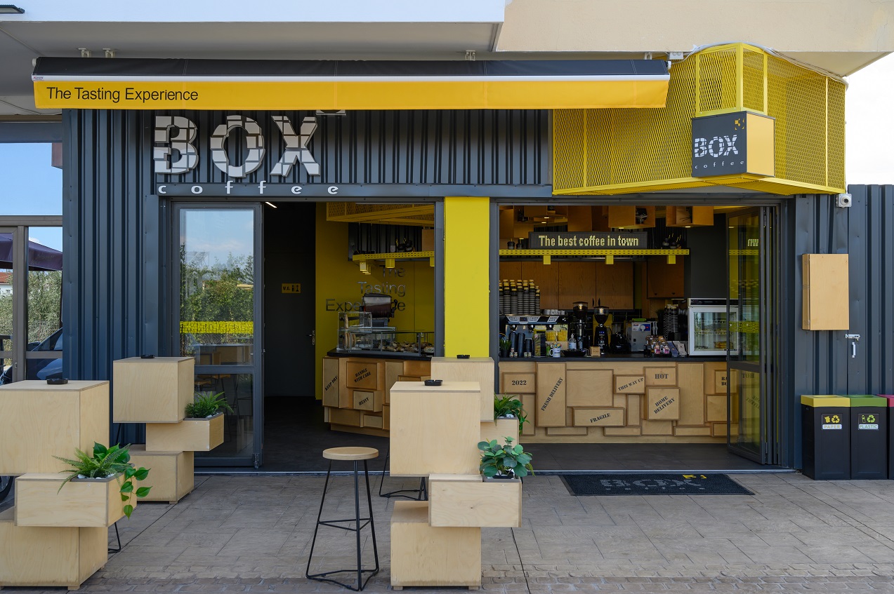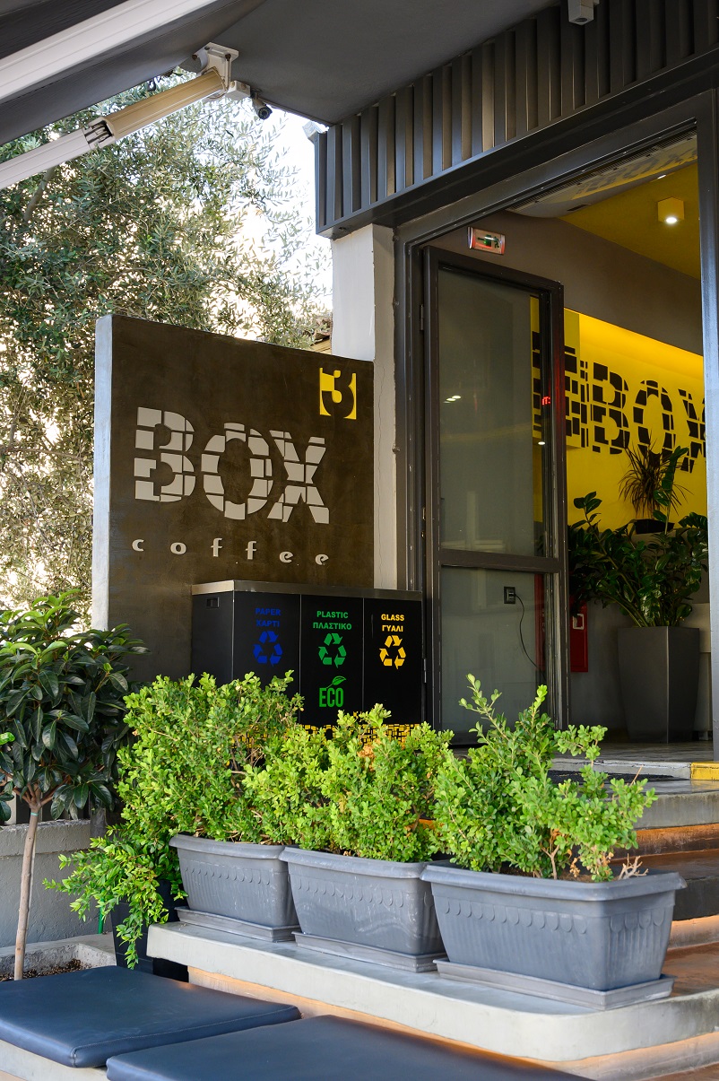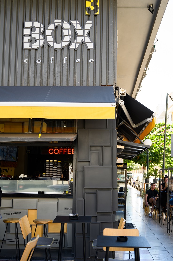 Tα COFFEE BOX3 διακρίνονται και για την αρχιτεκτονική τους, που επιμελήθηκε η “AIEN 1:1”. Εδώ μπορείς να απολαύσεις ποιοτικό καφέ Hausbrandt και φρέσκα χειροποίητα σνακ όπως μπάρες, muffins, cookies και μπαγκέτες.