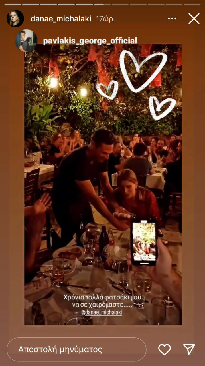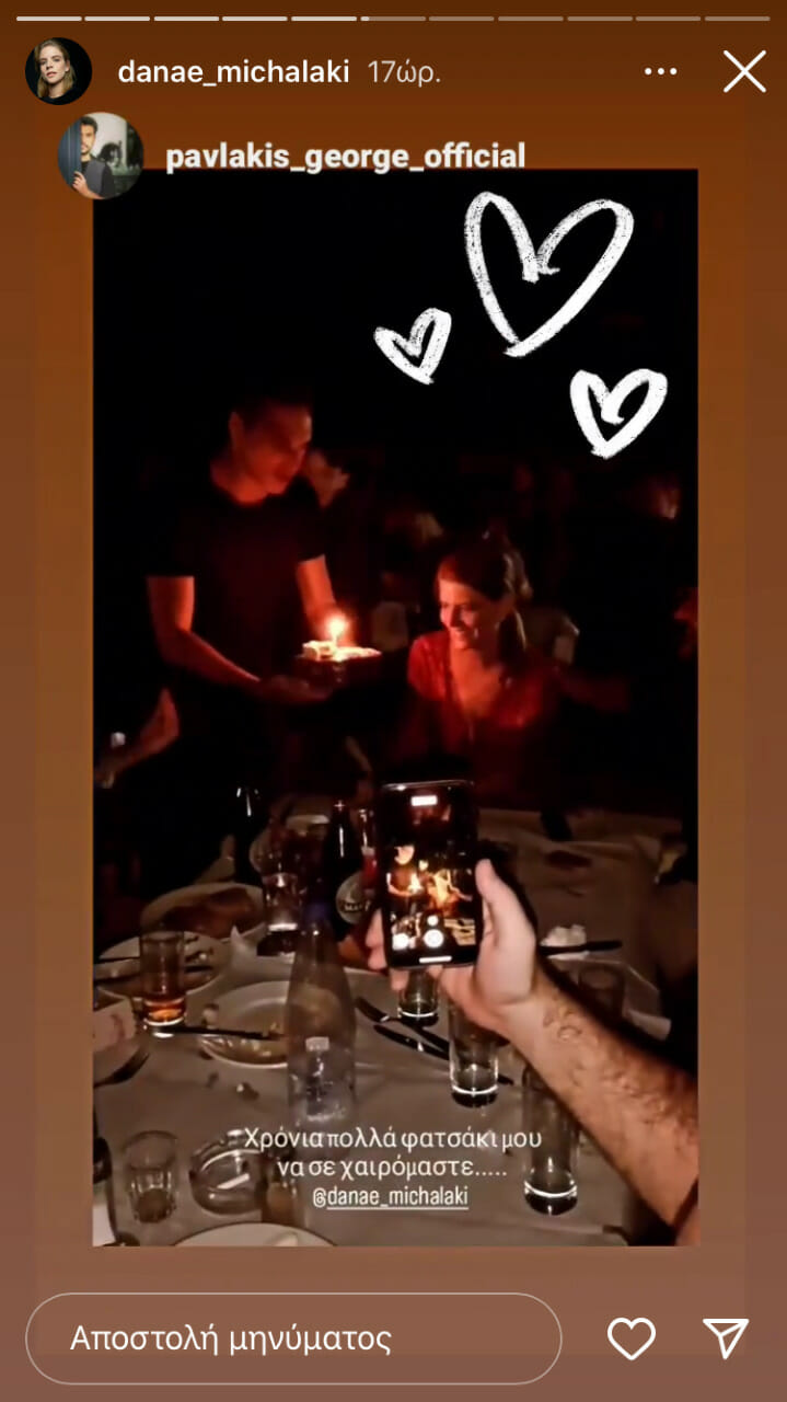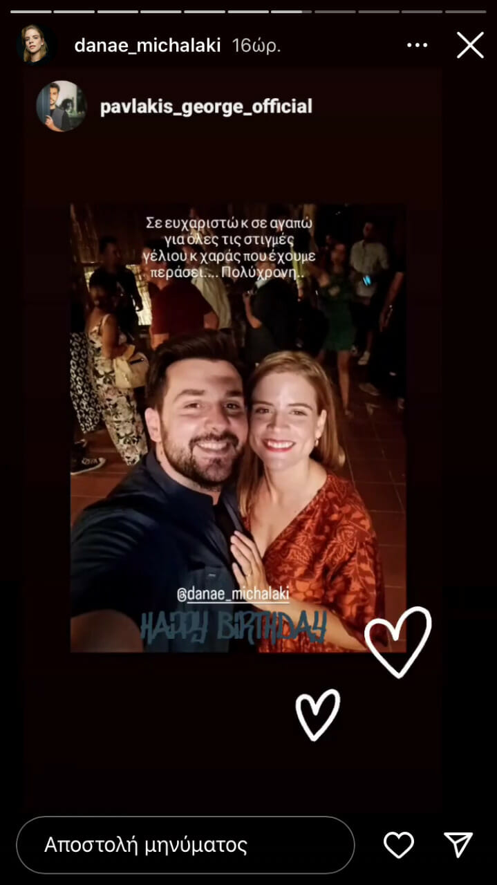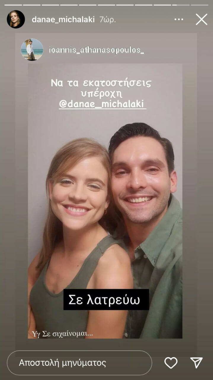 Η Δανάη Μιχαλάκη βρέθηκε στο πλευρό του Γιώργου Παπαγεωργίου στην παράσταση της Αντιγόνης το βράδυ της Παρασκευής. Ενώ χθες το απόγευμα έκανε μια πολύ συγκινητική δημοσίευση στον λογαριασμό της στο Instagran, για την επέτειό τους.
