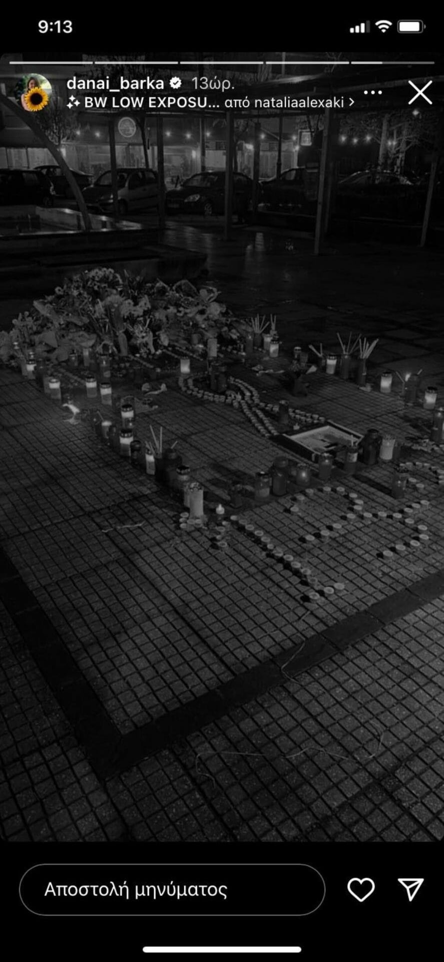 Παράλληλα, η Μπάρκα ανάρτησε και stories με μερικά ακόμη στιγμιότυπα από τα Τέμπη, σε ασπρόμαυρο χρώμα.