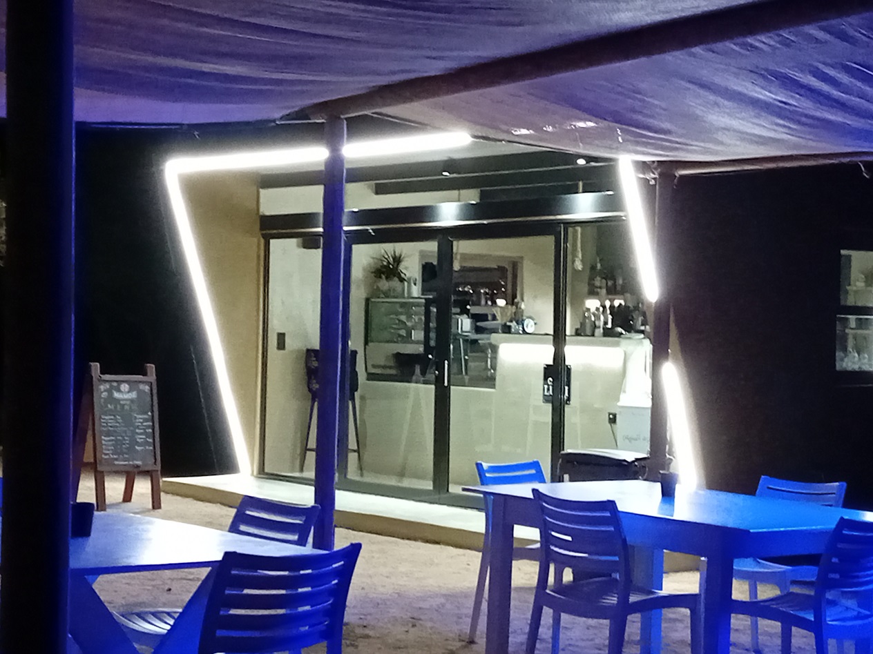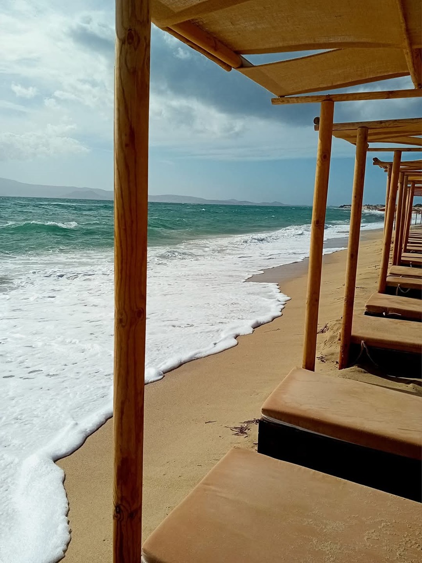 Στον εξωτερικό μας χώρο, δίπλα στη θάλασσα, απολαύστε το ποτό ή το κοκτέιλ σας με άμεση εξυπηρέτηση στην ξαπλώστρα. Σας περιμένουμε για ένα υπέροχο καλοκαίρι στη Νάξο – με γεύση, θέα και χαμόγελο!