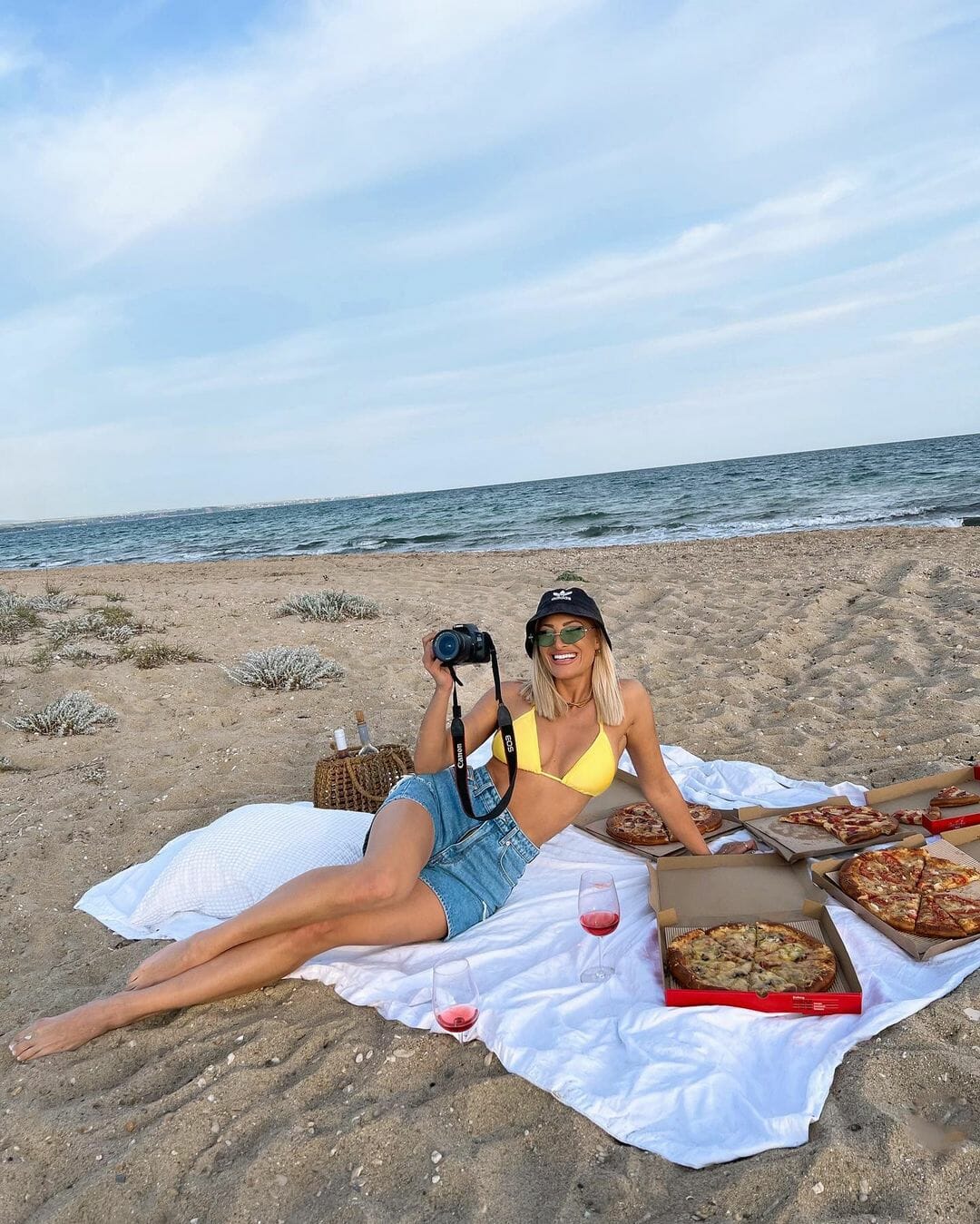 Η Ιωάννα Τούνη ανέβασε μία φωτογραφία δείχνοντας την να τρώει πίτσες σε μία παραλία με τον Δημήτρη Αλεξάνδρου να τις σχολιάζει με τον δικό του τρόπο.