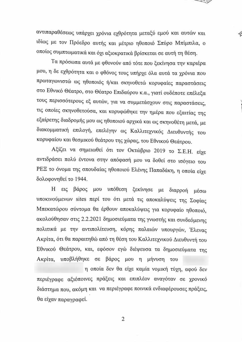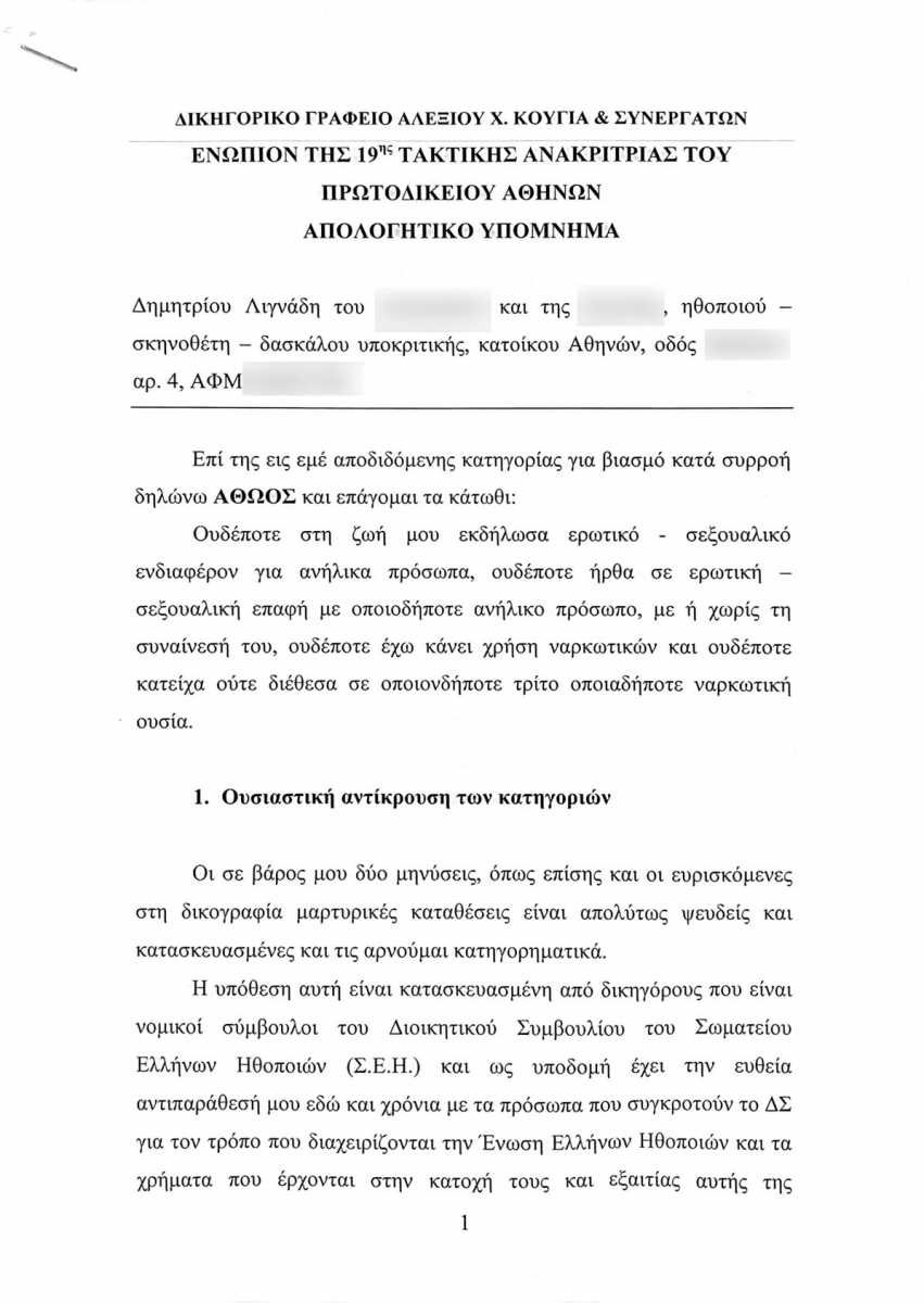 Δημήτρης Λιγνάδης: Όλο το υπόμνημα της απολογίας του