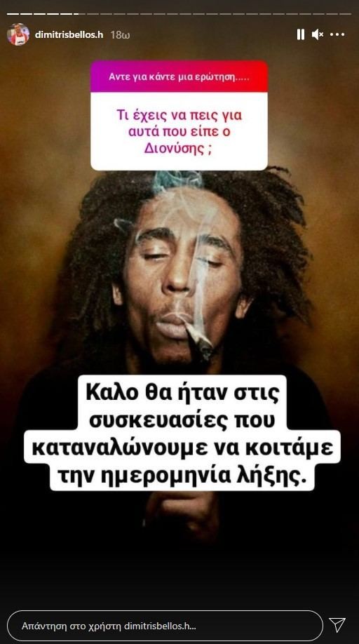 Μέσα από τον προσωπικό του λογαριασμό στο Instagram θέλησε να απαντήσει ο Δημήτρης Μπέλλος στον Διονύση Πρώϊο και στις δηλώσεις που έκανε για τις ερωτικές πράξεις που έλαβαν χώρα στο περσινό MasterChef, ανάμεσα στο ζευγάρι.