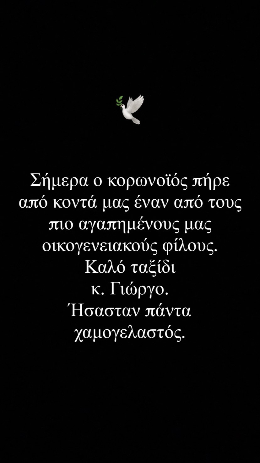 “Σήμερα ο κορονοϊός πήρε από κοντά μας έναν από τους πιο αγαπημένους μας οικογενειακούς μας φίλους. Καλό ταξίδι, κ. Γιώργο, ήσασταν πάντα χαμογελαστός” σχολίασε η Γιάννα Τερζή.