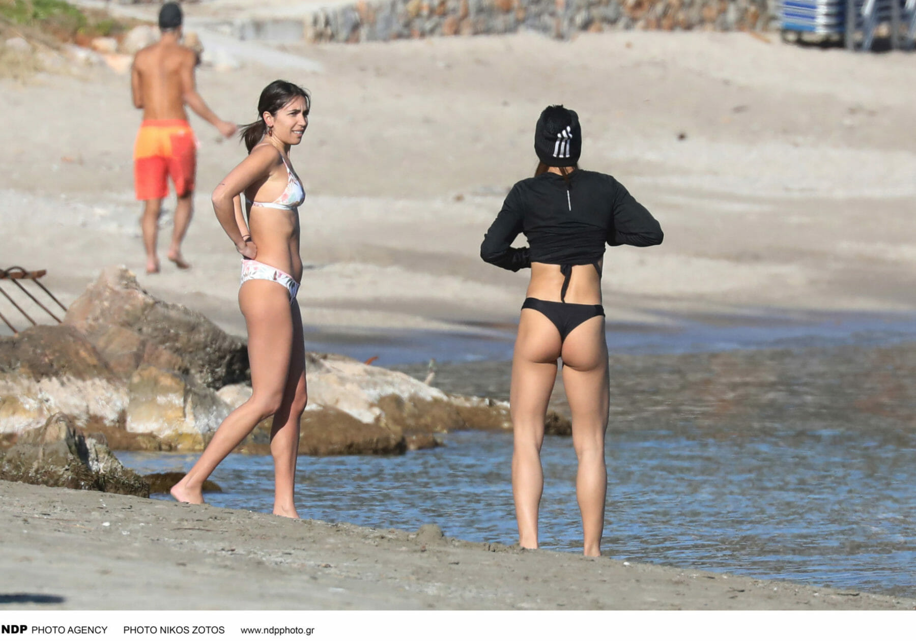 Η πρώην παίκτρια του Survivor φορούσε ένα μαύρο μαγιό ενώ η ραδιοφωνική παραγωγός ένα άσπρο μαγιό με σχέδια.