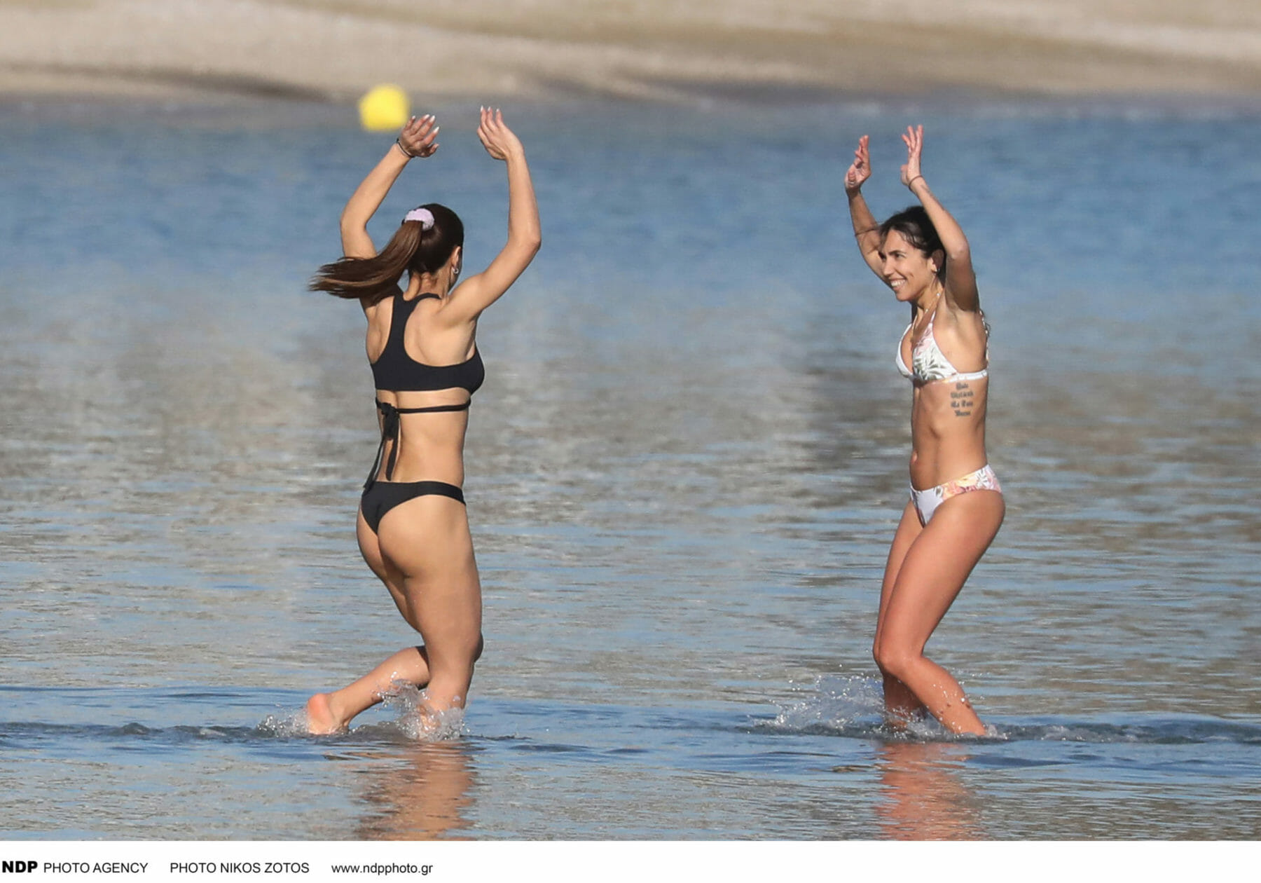 Ο φωτογραφικός φακός απαθανάτισε την Ειρήνη Παπαδοπούλου με την Ευαγγελία Τσιορλίδα στη Βουλιαγμένη να κάνουν το μπάνιο τους στη θάλασσα. Ναι καλά ακούσατε μπάνιο στη θάλασσα.