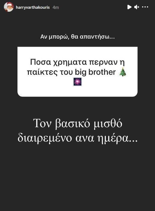 Ο παρουσιαστής του ριάλιτι του ΣΚΑΪ, Χάρης Βαρθακούρης, σε δημόσια συνομιλία που είχε με τους followers του, αποκάλυψε πόσα ήταν τελικά τα χρήματα που λάμβαναν οι διαγωνιζόμενοι.