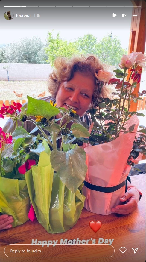 Η Ελένη Φουρέιρα, με αφορμή τη γιορτή της μητέρας, δημοσίευσε μια φωτογραφία της μητέρας στον προσωπικό της λογαριασμό στο Instagram. Η κυρία Μαριέτα ήταν περιτριγυρισμένη από γλάστρες με λουλούδια ενώ πόζαρε χαμογελαστή στον φακό
