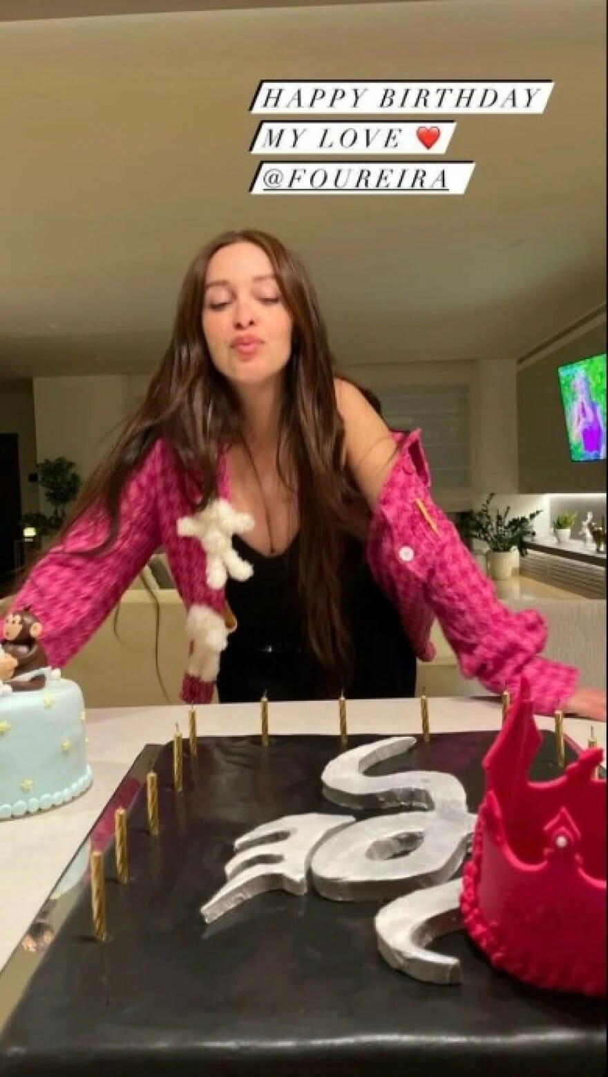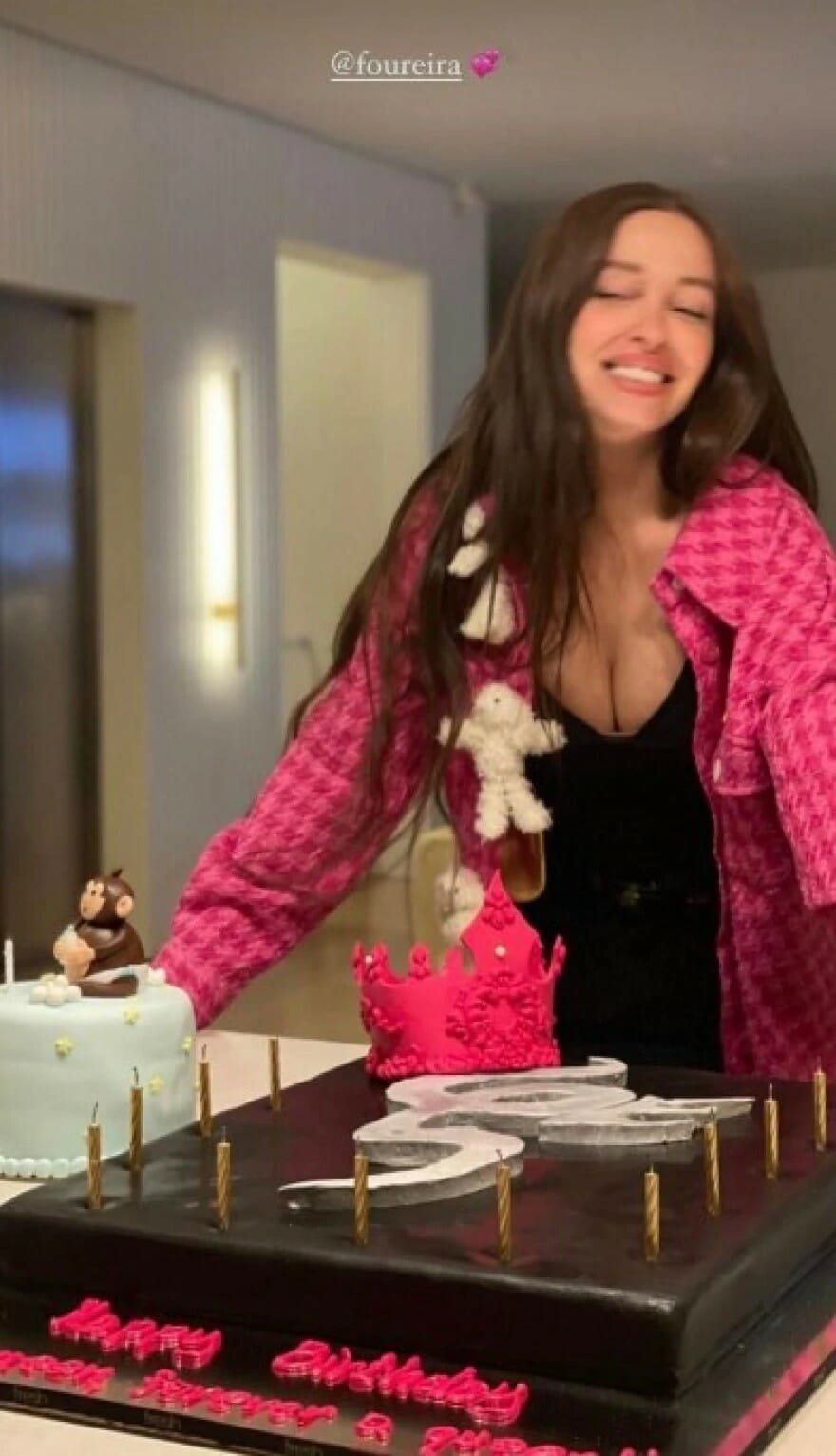 Μάλιστα, η τραγουδίστρια απαθανατίστηκε χαμογελαστή σβήνοντας τα κεράκια από δύο τούρτες, καθώς την ίδια μέρα ο γιος της έγινε 1 μηνός.