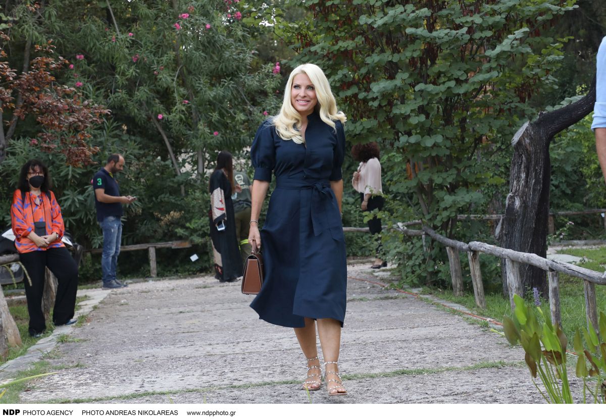 Η Ελένη Μενεγάκη, λαμπερή και φορώντας ένα λιτό αλλά εντυπωσιακό μπλε φόρεμα και σανδάλια, έδωσε συνέντευξη τύπου μαζί με τους συνεργάτες της εκπομπής της.
