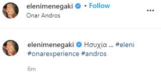 «Ησυχία», έγραψε χαρακτηριστικά η Ελένη Μενεγάκη στη λεζάντα της φωτογραφίας.