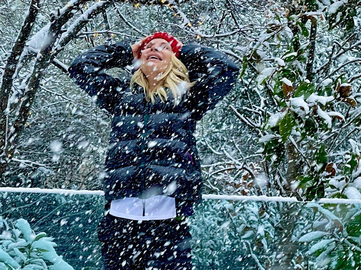 Η παρουσιάστρια πλημμύρισε το προσωπικό της λογαριασμό στο instagram με φωτογραφίες από την χιονισμένη αυλή της και κυριολεκτικά έκανε σαν παιδί.