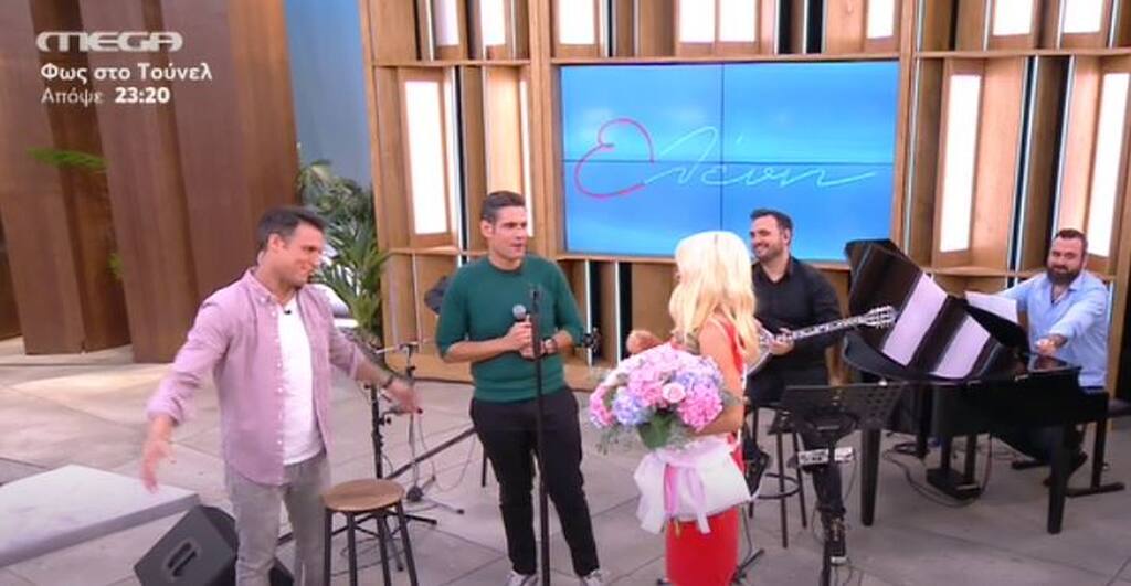 Ελένη Μενεγάκη: Γενέθλια στο πλατό! Η ανθοδέσμη, οι ευχές των συνεργατών της και το εντυπωσιακό φόρεμα