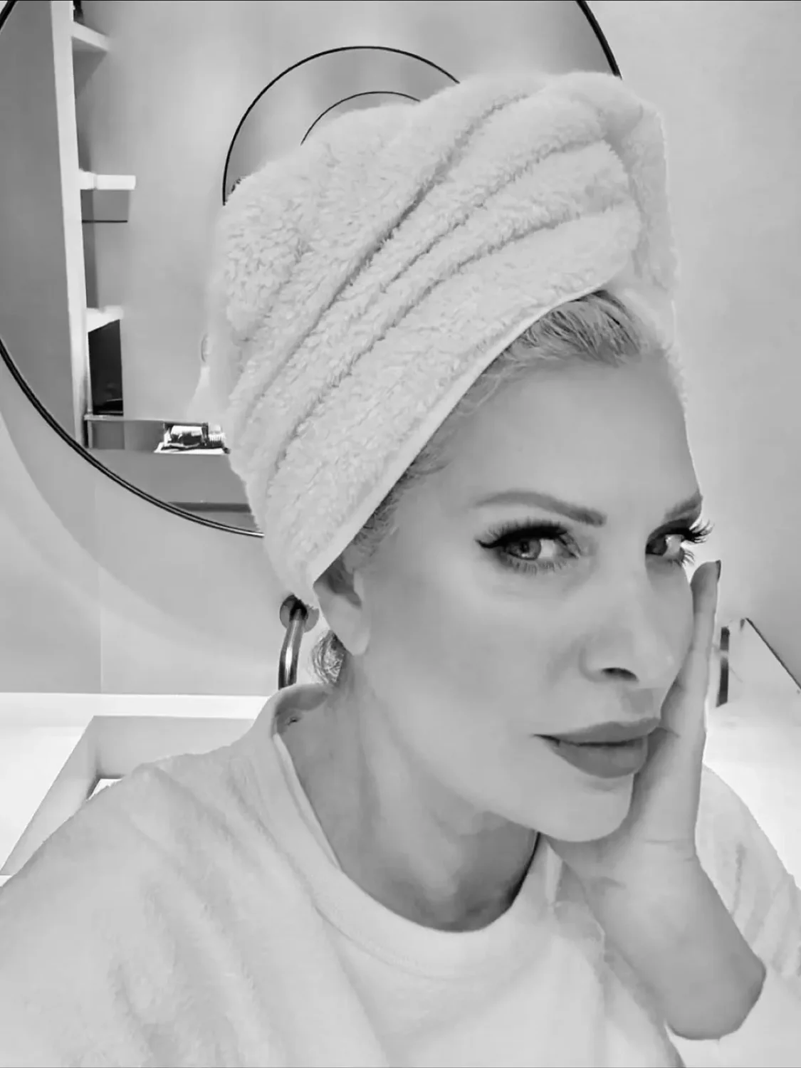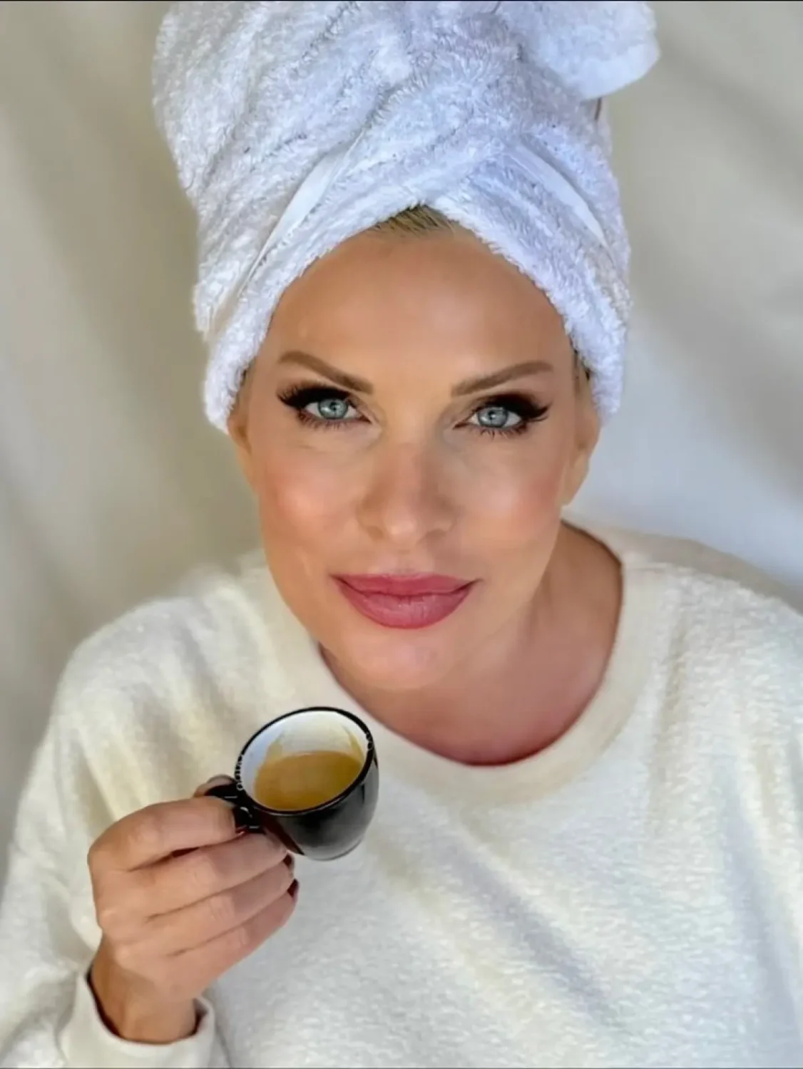 Η Ελένη Μενεγάκη λοιπόν, μοιράστηκε μια σειρά από φωτογραφίες στις οποίες ποζάρει με τη πετσέτα στο κεφάλι μέσα από το μπάνιο της στο σπίτι της στην Κηφισιά ενώ απολαμβάνει τον πρωινό της καφέ. Η ίδια καλημερίζει το κοινό της, το οποίο την αποθέωσε στα σχόλια.