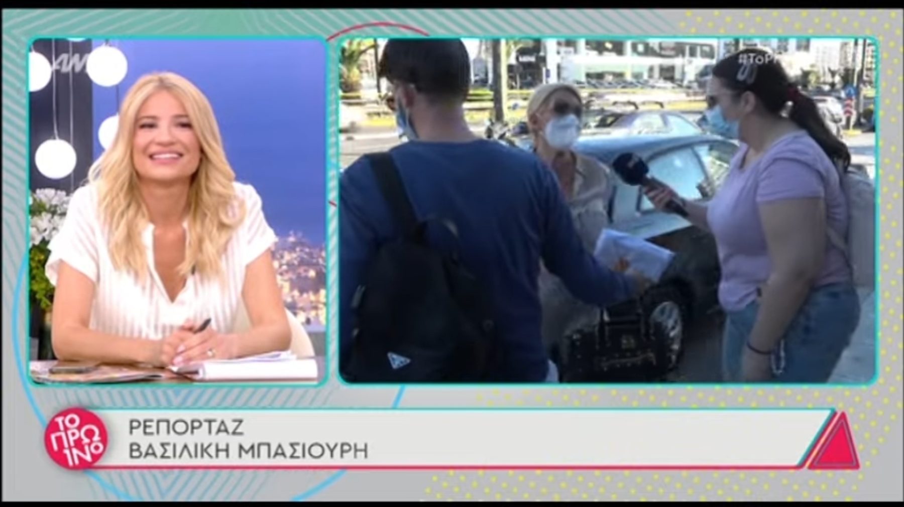 Η παρουσιάστρια δεν φάνηκε να της αρέσει και πολύ η έκπληξη που την περίμενε και κυρίως οι ερωτήσεις της δημοσιογράφου.