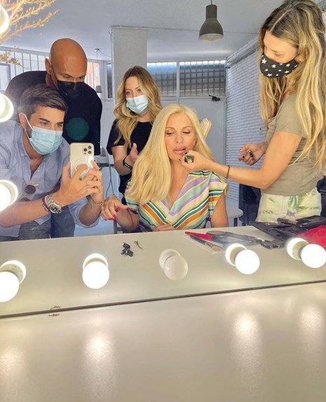 Η Ελένη Μενεγάκη ανέβασε τρεις φωτογραφίες από τα παρασκήνια στο Instagram και έγραψε χαρακτηριστικά: