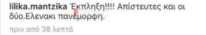 Εκείνο ωστόσο που ξεχώρισε, είναι αυτό της πεθεράς της Λιλίκας Μαντζίκα. «Έκπληξη!! Απίστευτες και οι δυο. Ελενάκι πανέμορφη» έγραψε η μητέρα του Μάκη Παντζόπουλου.