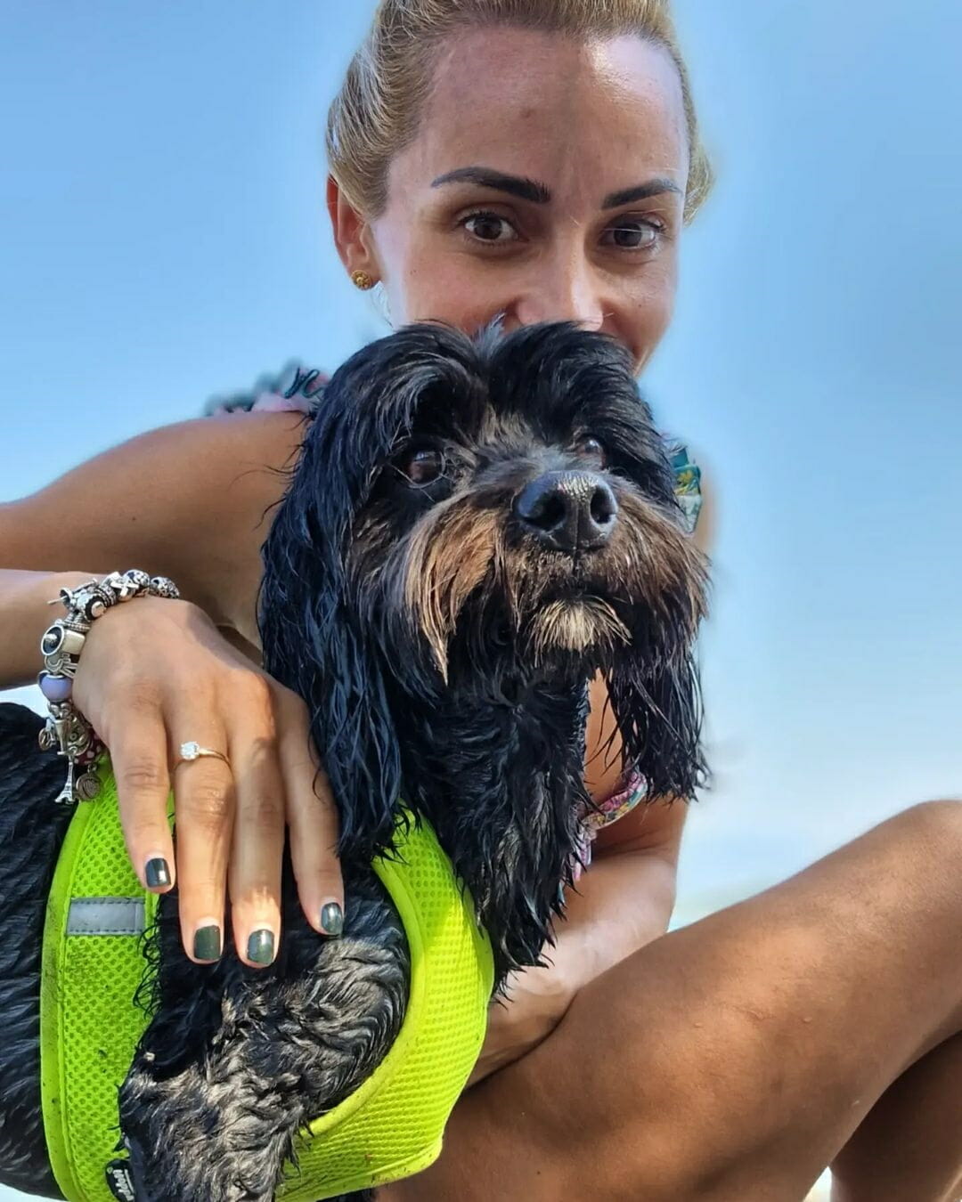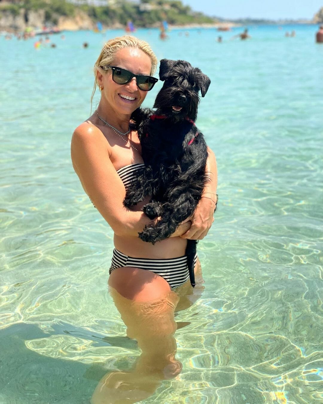 H Βασιλική Μιλλούση πόζαρε στον φακό εντελώς αμακιγιάριστη, δίπλα στο σκυλάκι της, το οποίο της κρατά συντροφιά και την περίοδο των διακοπών.