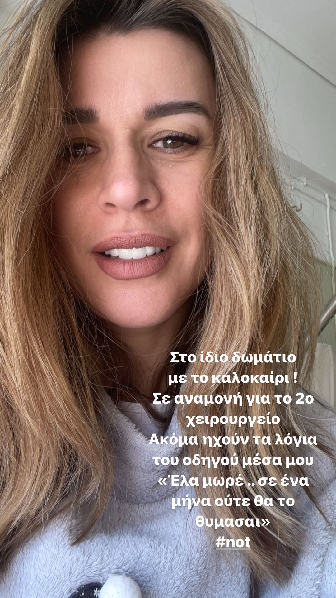 “Στο ίδιο δωμάτιο με το καλοκαίρι! Σε αναμονή για το δεύτερο χειρουργείο. Ακόμα ηχούν τα λόγια του οδηγού μέσα μου “Έλα μωρέ σε ένα μήνα ούτε που θα το θυμάσαι…” NOT” έγραψε η Έρρικα Πρεζεράκου στα Instagram Stories της.