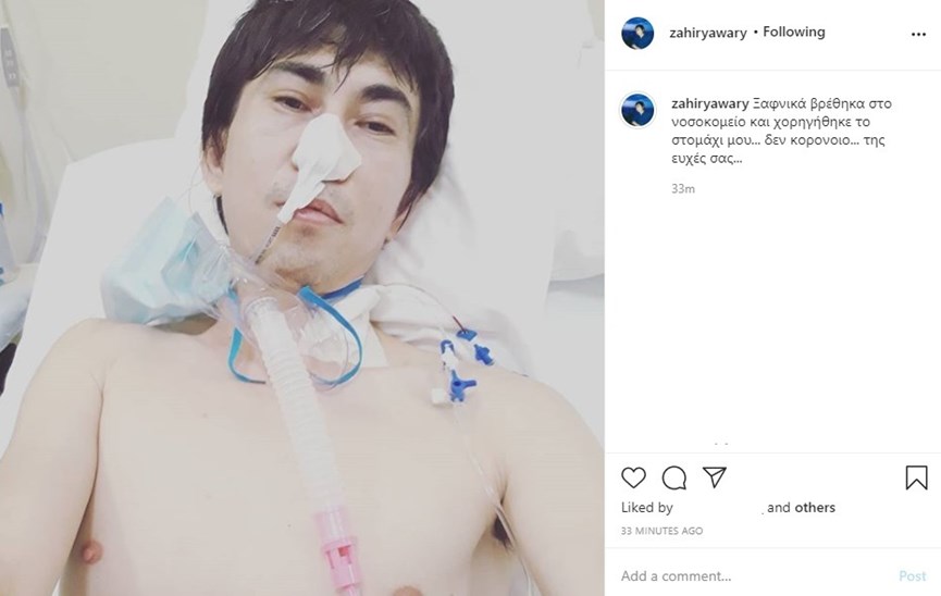 «Ξαφνικά βρέθηκα στο νοσοκομείο… Το στομάχι μου… Δεν έχω κορονοϊό… Τις ευχές σας…», έγραψε ο Ζαχίρ στον προσωπικό του λογαριασμό στο instagram.