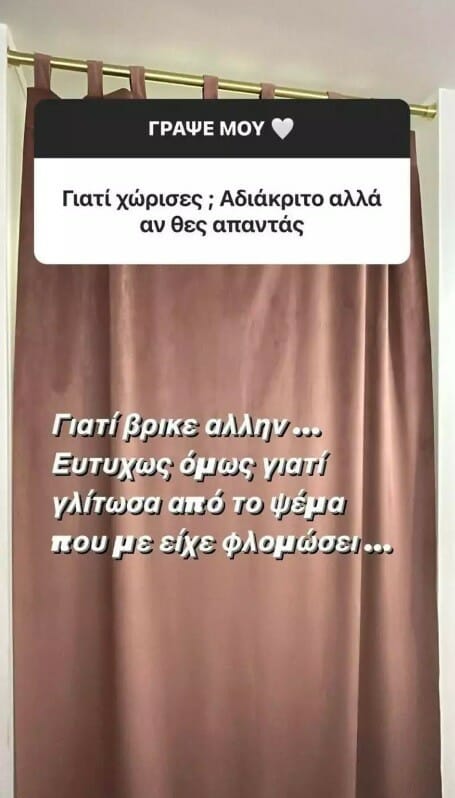 Γιατί βρήκε άλλη. Ευτυχώς όμως γλίτωσα από το ψέμα που με είχε φλομώσει.