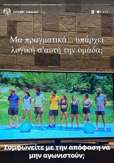 Το γεγονός ότι αγωνίστηκε μόνο ο James, o Nίκος Μπάρτζης και η Άννα Μαρία Βέλλη την έκανε έξω φρενών κι έγραψε πως “μα πραγματικά… υπάρχει λογική σε αυτή την ομάδα;”