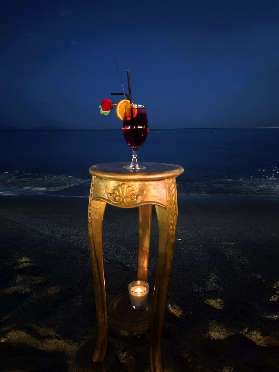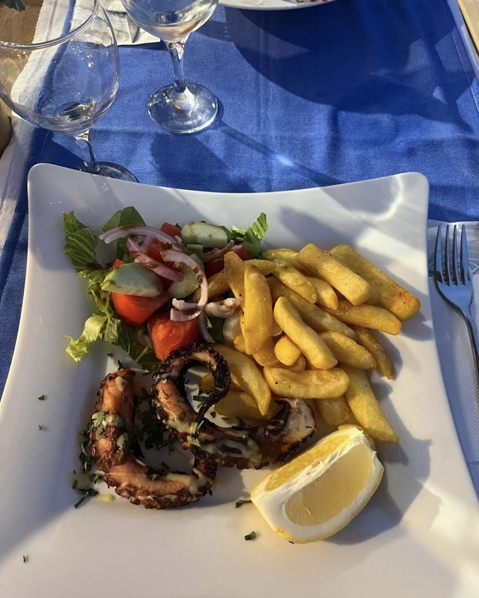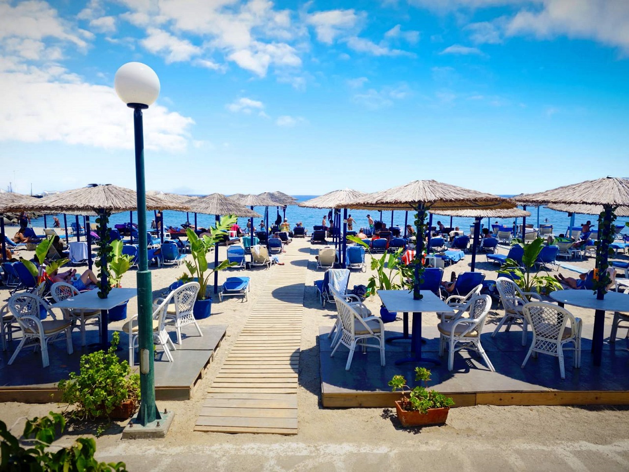 Κατά τη διάρκεια της ημέρας, απολαύστε γεύσεις θαλασσινών σε ένα γαλήνιο περιβάλλον με θέα το απέραντο γαλάζιο. Το μενού περιλαμβάνει επίσης πίτσα, παραδοσιακά ορεκτικά και πλούσιες επιλογές πιάτων τόσο κρεατικών όσο και θαλασσινών, ενώ το βράδυ απολαύστε δροσερά κοκτέιλ.