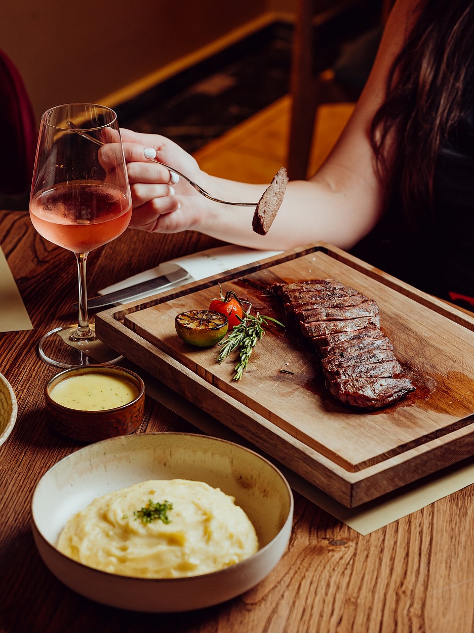 Τα πιάτα ετοιμάζονται με φρέσκα, ποιοτικά υλικά και εκλεκτές κοπές κρέατος, γεμάτα γεύση και χαρακτήρα. Η λίστα κρασιών περιλαμβάνει επιλογές από ελληνικούς και διεθνείς αμπελώνες, ενώ στο bar σερβίρονται πρωτότυπα κοκτέιλ που συμπληρώνουν τέλεια το γεύμα. Στο τέλος, τα γλυκά εντυπωσιάζουν με την ισορροπία και τη φινέτσα τους, ολοκληρώνοντας μια αξέχαστη γαστρονομική εμπειρία.