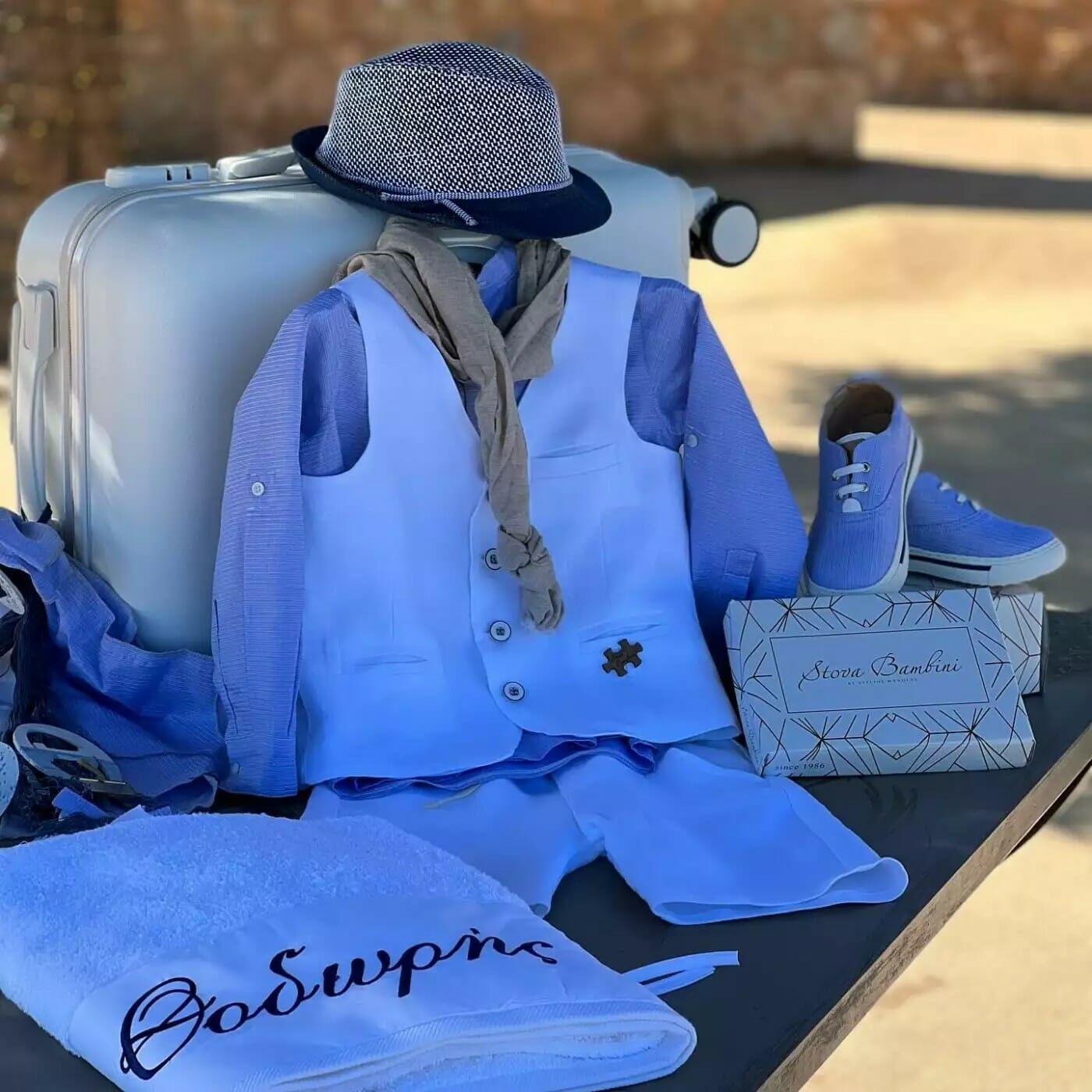 Το «πρωινό» εξασφάλισε το προσκλητήριο της βάφτισης που είναι στα χρώματα του μπλε και ο μικρός θα πάρει το όνομα του παππού του, Θοδωρής.
