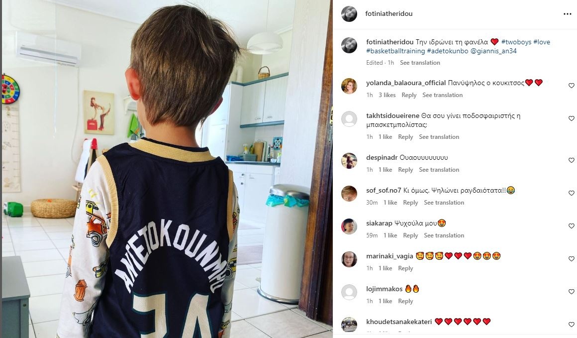 Ο 4χρονος Θοδωρής γνώρισε το νεογέννητο αδερφό του, ενώ η Φωτεινή Αθερίδου φωτογράφισε τον πρωτότοκο γιο της με τη φανέλα του Γιάννη Αντετοκούνμπο και σχολίασε: «Την ιδρώνει τη φανέλα».