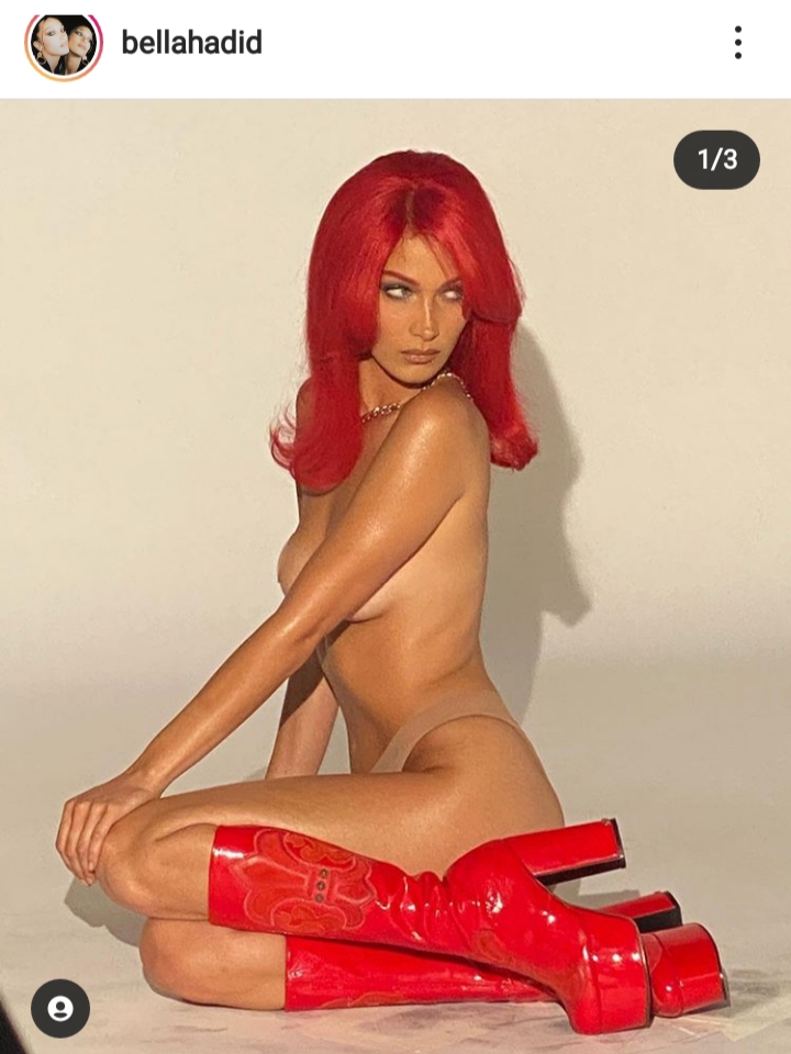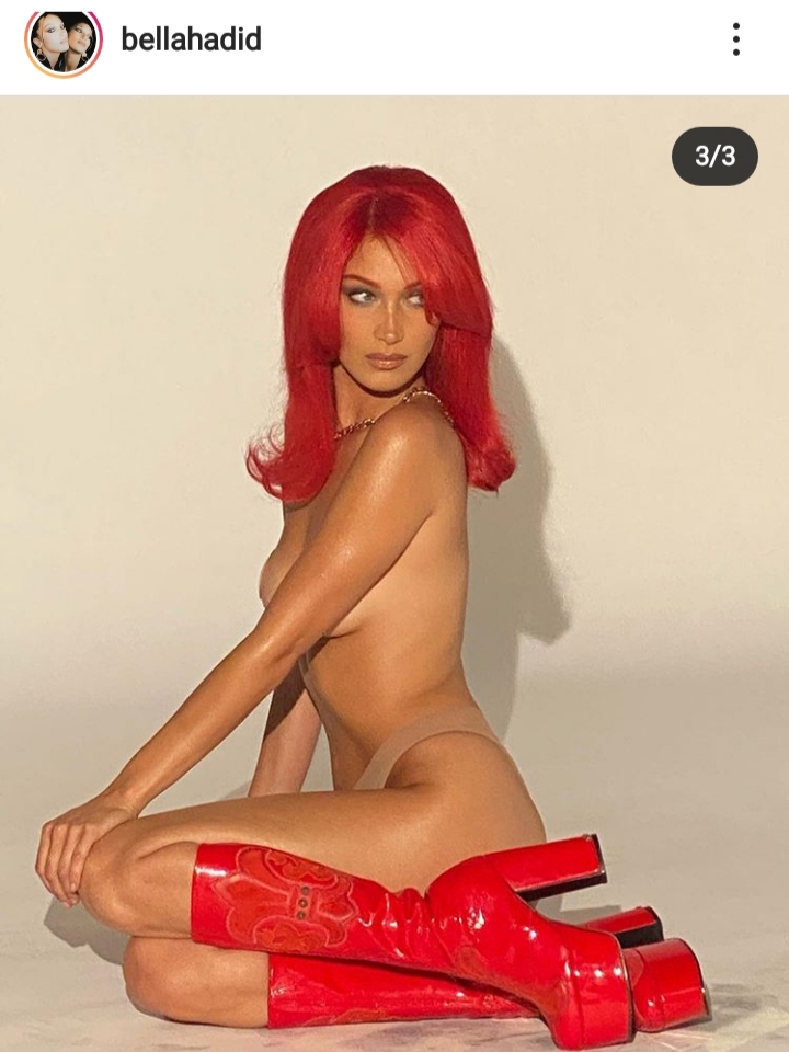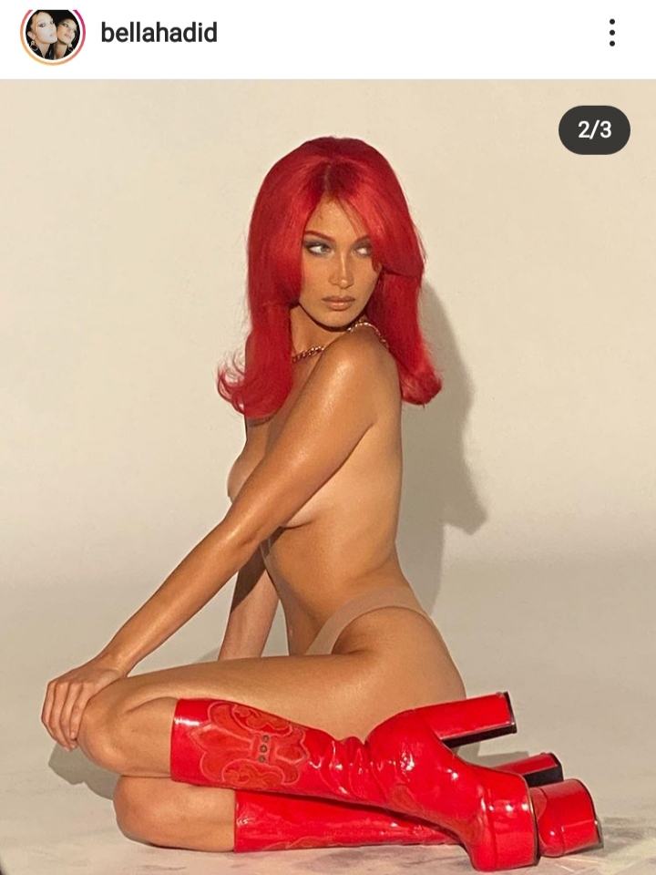 Φωτιά στα κόκκινα η Bella Hadid! Ποζάρει ολόγυμνη με κόκκινες μπότες και κόκκινα.. μαλλιά!