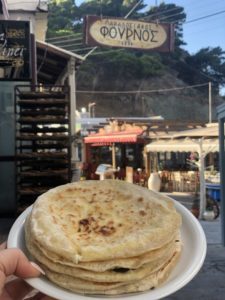 Σαν το φρέσκο ψωμί του Μάρκου βγει από το φούρνο, μυρίζει σε κάθε μεριά του χωριού. Κάθε λογής ψωμί, παραδοσιακό, χωριάτικο, πολύσπορο, σταφιδόψωμο, τυρόψωμο, ελιόψωμο, είναι όλα δική  του συνταγή! Μολονότι τα ψυγεία μας είναι κάθε μέρα γεμάτα με ολόφρεσκα γλυκά, το highlight του μαγαζιού είναι η πολιτικής προέλευσης μηλόπιτα της γιαγιάς Ελένης!
