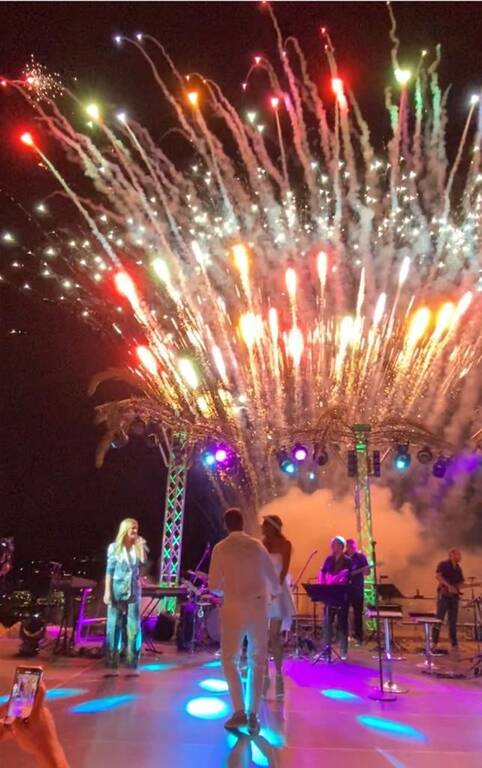 Μετά το μυστήριο ακολούθησε το μεγάλο party του ζευγαριού, υπό τους ήχους των αγαπημένων επιτυχιών της Νατάσας Θεοδωρίδου, ενώ την συνόδευσε στα νέα τραγούδια τους, ο Πέτρος Ιακωβίδης.