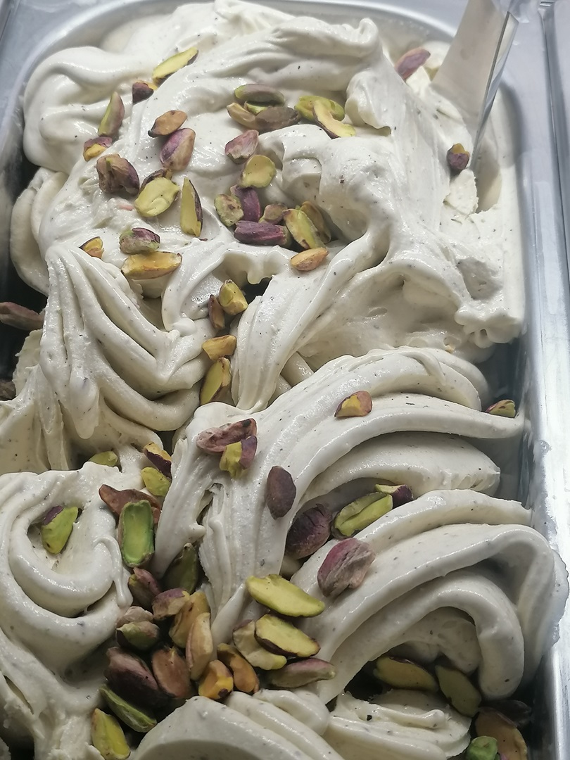 Κάθε παγωτό είναι φρέσκο, παρασκευασμένο καθημερινά στο εργαστήριο της gelateria, με επιλεγμένα υλικά, χωρίς συντηρητικά και τεχνητά αρώματα. Με ιδιαίτερες γεύσεις όπως φιστίκι Σικελίας, σοκολάτα Valrhona, λεμόνι sorbet, καρπούζι με βασιλικό, mascarpone με σύκο ή φιστίκι-ταχίνι, αλλά και πολλές vegan επιλογές, το μενού μας ικανοποιεί και τον πιο απαιτητικό ουρανίσκο.
