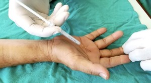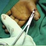 - Με μικρή τομή 1 cm στην παλάμη υπό τοπική αναισθησία και διάνοιξη του παθολογικού ελύτρου οπότε και διαπιστώνεται άμεσα διεγχειρητικά η ελεύθερη κίνηση του δακτύλου και η πλήρης αποκατάσταση της κινητικότητας και λειτουργικότητας του δακτύλου.