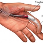 - Ευαισθησία ή ψηλαφητή διόγκωση στην παλάμη αντίστοιχα με τη βάση του δακτύλου.