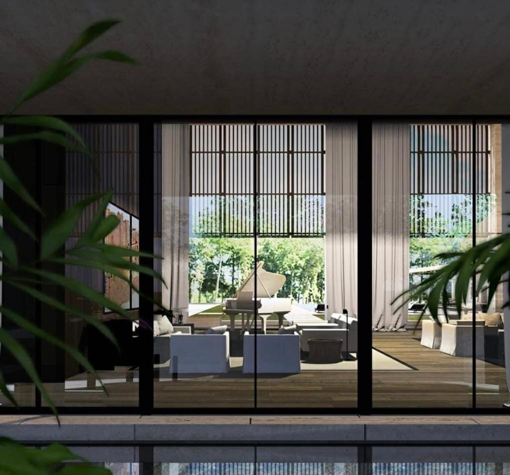 Το υδάτινο στοιχείο χαρακτηρίζει, άλλωστε, το σπίτι με τις λιτές, σχεδόν «αυστηρές» θα έλεγε κανείς γραμμές, καθώς, όχι μόνο έχει μια μεγάλη πισίνα, αλλά και μικρές τεχνητές λίμνες.