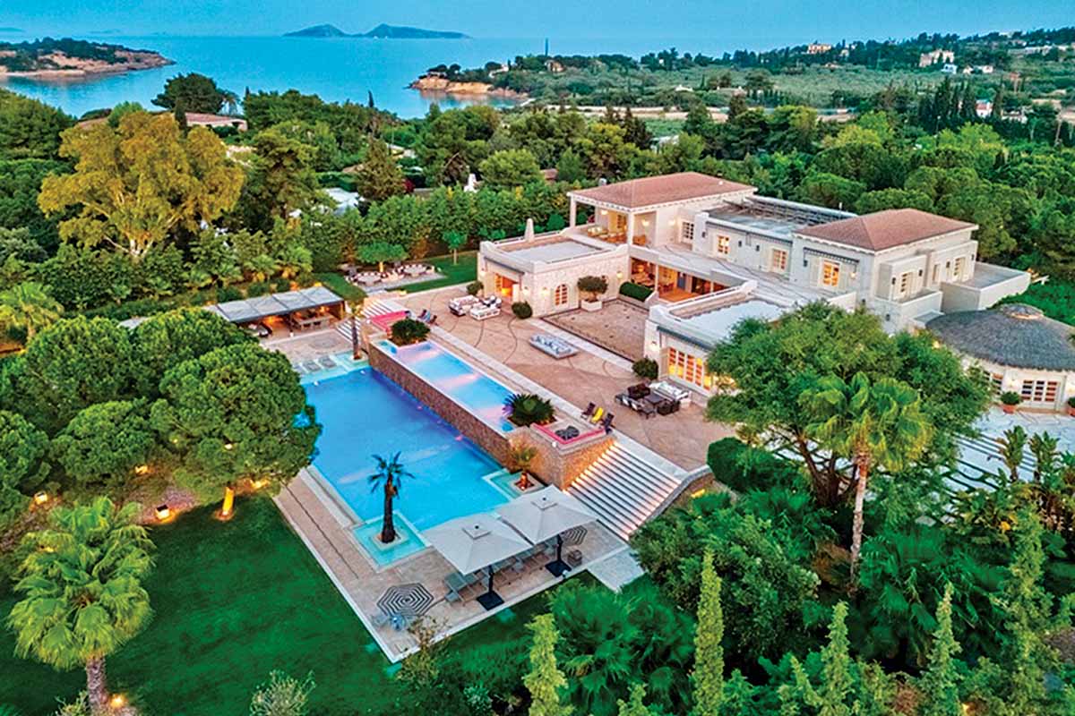 Μάλιστα, σύμφωνα με τις φήμες, η βίλα των 3.200 τετραγωνικών μέτρων σε παραθαλάσσια οικόπεδο 26,5 στρεμμάτων, πωλείται όπως είναι εκπληκτικά επιπλωμένη, εξ ου και εκτοξεύεται η τιμή της. Το οικόπεδο-φιλέτο με τους τεράστιους φοίνικες, αλά Καλιφόρνια Palm Springs, διαθέτει δύο πισίνες που ενώνονται με καταρράκτη, ιδιωτική γαλαζοπράσινη παραλία, προβλήτα στην οποία έδενε το σκάφος του Γιάννη Φράγκου αλλά και γήπεδο ποδοσφαίρου και μπάσκετ, που χρησιμοποιείται και ως ελικοδρόμιο.