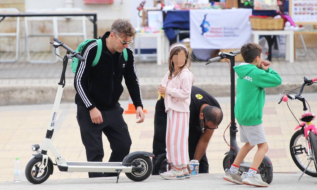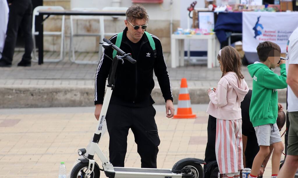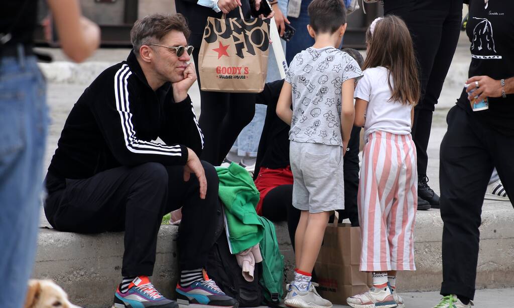 Ενώ ο γιος του και η κόρη του ήταν στο πλευρό του. Η Φοίβη και ο Φίλιππος έπαιζαν ανέμελα, ενώ ο ηθοποιός συμμετείχε στο παιχνίδι τους, αφού έκανε πατίνι μαζί τους.