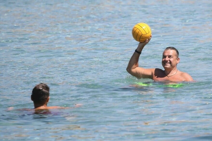 Γιώργος Λιάγκας: Παιχνίδια με τους γιους του στη θάλασσα της Μυκόνου