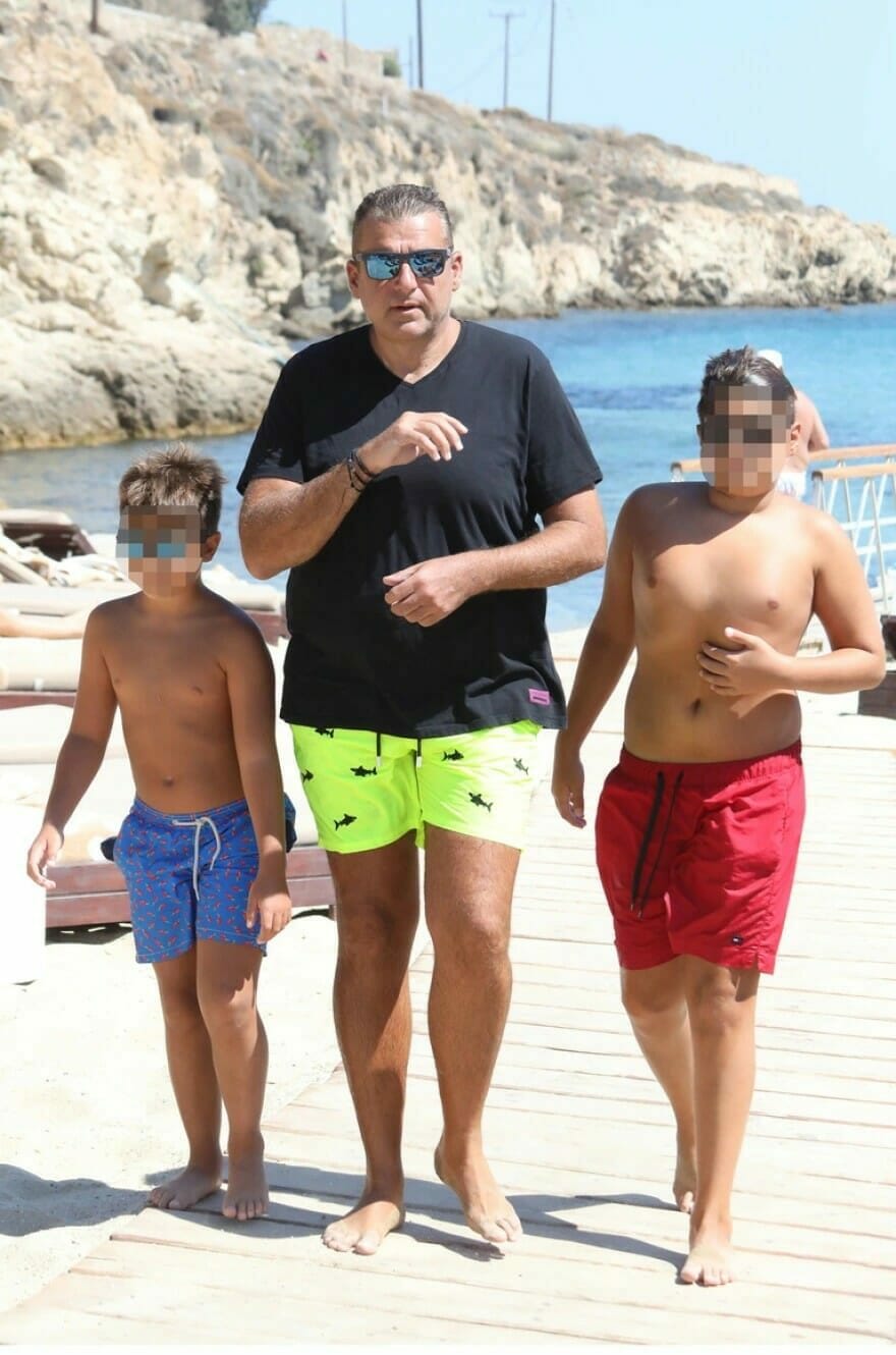 Ο Γιώργος Λιάγκας απολαμβάνει τις καλοκαιρινές του διακοπές στη Μύκονο μαζί με τους γιους του.
