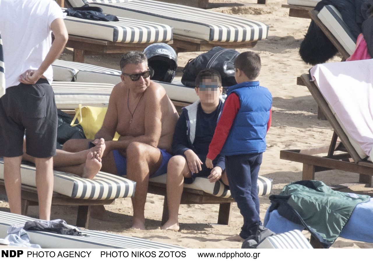 Ο Γιώργος Λιάγκας μαζί με τους δύο γιους του εξόρμησαν στην παραλία για να απολαύσουν την χειμωνιάτικη λιακάδα.