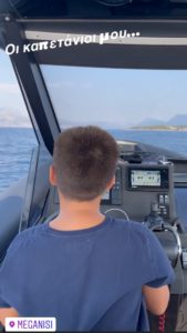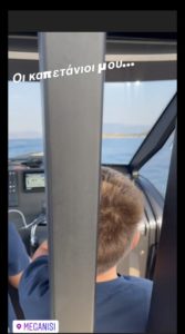 Ο παρουσιαστής ανέβασε ένα βίντεο στα social media με τους γιους του να έχουν αναλάβει χρέη καπετάνιο και να οδηγούν το σκάφος τους στις θάλασσες γύρω από το Μεγανήσι.