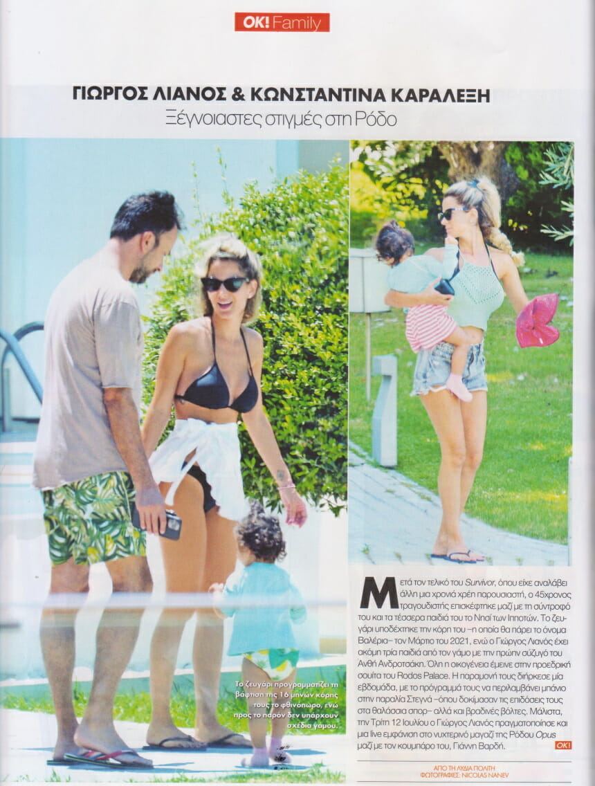 Σύμφωνα με τα όσα Δημοσίευσε το περιοδικό OK ο Γιώργος Λιανός παρέμεινε για λίγες ημέρες στο νησί των ιπποτών μακριά από τα αδιάκριτα βλέμματα φορώντας Απλά μαγιό και σαγιονάρα και φέροντας απλά να ξεκουραστεί από όλα όσα έζησε στο ριάλιτι επιβίωσης του ΣΚΑΪ survivor.
