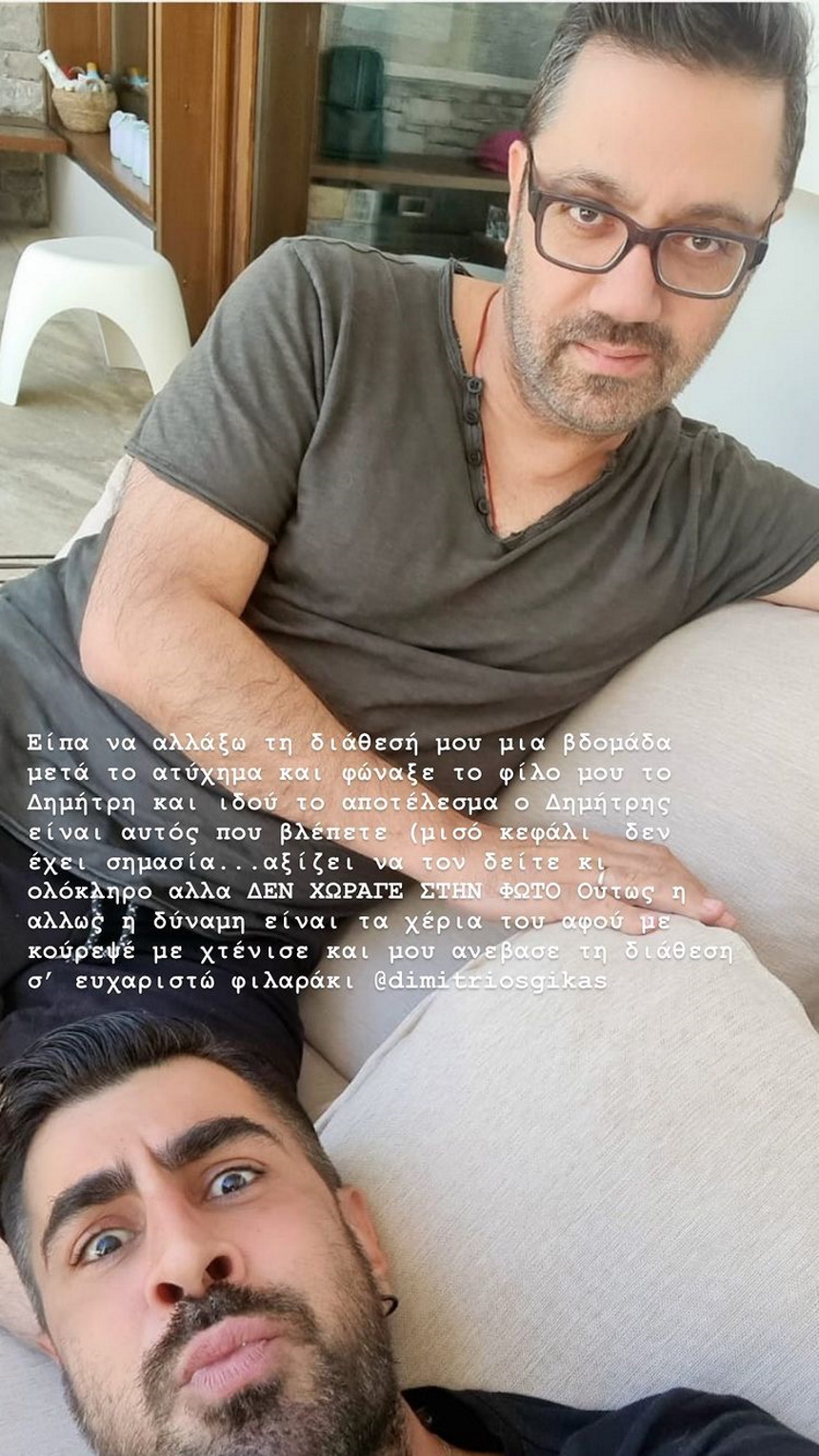 Ο ίδιος έβγαλε δύο φωτογραφίες με τον φίλο του, Δημήτρη Γκίκα.