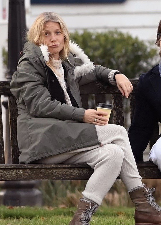 Η Γκουίνεθ ήταν ντυμένη με φόρμες, μποτάκια και φορούσε ένα ζεστό πανωφόρι, χωρίς ίχνος μακιγιάζ κι ο Μπραντ φορούσε ένα μπλε παλτό και σιέλ χοντρό πουλόβερ. Η σταρ έχει κατά καιρούς προκαλέσει με δημοσιεύσεις της στα κοινωνικά δίκτυα, όπως τον Σεπτέμβριο που ανέβασε μια ολόγυμνη φωτογραφία της για τα γενέθλιά της και η 16χρονη κόρη της δεν παρέλειψε να την σχολιάσει αρνητικά.Τα δύο παιδιά της από τον πρώτο της γάμο με τον Κρις Μάρτιν έχουν αντιρρήσεις επίσης και για τα προϊόντα που κυκλοφορούν με το όνομά της στα καταστήματά της. Σε συνέντευξή της στην Έλεν ντε Τζενέρις δήλωσε ότι :«η κόρη μου με βρίσκει θλιβερή»